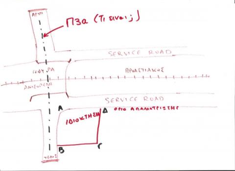 Εχω ενα αγροτεμάχιο που μέρος του έχει ηδη έχει απαλλοτριωθει για βελτιωση Ε.Ο. Αθηνων-Κορινθου. Ψάχνω να βρω αν οικοδομειται. Υπάρχει γραμμη προαστιακου και εκατερωθεν της γραμμες 2 service road που συνδεονται με γεφυρα. Η γραμμη του προαστιακου ειναι σε τελειως διαφορετικο υψος απο αυτη των service road και του ακινητου. Απο τα σχέδια της απαλλοτριωσης αλλα και στην πραγματικοτητα συνορευει με service road απο την μια πλευρα. Τον service road το αναφερει και στο σχεδιο. Καθετα στον βοηθητικο δρόμο, η απαλλοτριωση παρουσιαζει εναν δρόμο (οπως και στην πράξη) μηκους 250 μ. και τον αναφέρει Π3α. Αυτος στην πράξη δεν συνδεει καποιους κυριως δρόμους αλλα καποιες περιοχες που εχουν φτιαχτει αυθαιρετα και εχει σαρχη και τέλος. Ψάχνω να δω τι αποσταση θα αφήσω απο το δρόμο αυτο, για να δω αν οικοδομείται. Η Ε.Ο. ειναι σε τελειως διαφορετική θέση από αυτη που ειμαι εγω, προφανως αφορα μονο τον προαστιακο. Πήγα στην πολεοδομιά και αφου φρόκαραν και αυτη τελικα μου ειπαν οτι μάλλον!!! ειναι και αυτο βοηθητικος δρόμος, οποτε παω 20 μ απο τον αξονα της οδου. Ξέρει κανεις τι ειναι Π3α; Σας στέλνω σκαρίφημα.