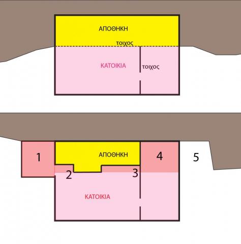 Καλημέρα, επανέρχομαι στο ερώτημά μου #241 Έχω ισόγειο σε κεκλιμένο έδαφος. Στον Οικ.Άδεια στη νοητή γραμμή που διατρέχει το κτήριο και που ήταν κατά ΓΟΚ 85' το όριο εδάφους <1.50m είχε δηλωθεί αποθήκη. Ότι ήταν >1.50μ δηλώθηκε κατοικία Στη πραγματικότητα το δάπεδο και το καθαρό ύψος ορόφου συμφωνεί με την Ο.Α και έγιναν οι εξής αυθαιρεσίες: 1. Στα αριστερά ξεμπαζώθηκε και δημιουργήθηκε υπνοδωμάτιο της κατοικίας κατ'επέκταση του ισογείου (>1.50μ από το έδαφος πλέον). 2. Στο κέντρο, τμήμα της αποθήκης έγινε διάδρομος προς το αυθαίρετο υπνοδωμάτιο εντός του ορίου <1.50μ εδάφους που φαίνεται στην Ο.Α. 3. Στο κέντρο, τμήμα της αποθήκης έγινε μέρος της κατοικίας εντός του ορίου <1.50μ εδάφους που φαίνεται στην Ο.Α. 4. Ξεμπαζώθηκε η μία πλευρά εντός του ορίου <1.50μ εδάφους που φαίνεται στην Ο.Α. & έγινε υπνοδωμάτιο μέρος της κατοικίας (>1.50μ από το έδαφος πλέον) 5.Προσθέτω πως πλέον υπάρχει πόρτα που επικοινωνεί η αποθήκη με τη κατοικία ενώ στην Ο.Α. υπήρχε άλλη είσοδος με σκάλα και δεν υπήρχε επικοινωνία αποθήκης κατοικίας (δε τη δείχνω λόγω απλούστευσης του σκαριφήματος) Λύσεις: 1. ΥΔΚΧ. και αναλυτικός για ξεμπάζωμα 2,3,4,5 .Με προβληματίζει το γεγονός πως απο εκεί περνούσε η νοητή γραμμή του ορίου εδάφους που έμπαινε στον Σ.Δ. 2,3. ΥΔKX 3. Από τη στιγμή που ξεμπαζώθηκε μόνο η μία πλευρά και οι άλλες 2 παραμένουν τυφλές τι ισχύει; Θεωρω ΥΔ με μειωτικό αφού είναι είναι στη στάθμη κατά την ΟΑ και αναλυτικός για ξεμπάζωμα όπως επεξηγείται και στην Εγκ.4 σελ 9 παρ.6 5.Αν πάρουμε τομή κάθετα στην αποθήκη από ύψος εδάφους 2.90 πάνω πάνω στην αρχή της αποθήκης καταλήγει στο 0 κάτω κάτω στη κατοικία. Αν τη πάρω έτσι 2d και μεμονωμένα τη τομή η αποθήκη πλέον είναι μέσα στο <1.50μ όριο του ΓΟΚ. Αφού έχει γίνει ξεμπάζωμα αριστερά και δεξιά πλέον από την αποθήκη δεν υπάρχει νοητή γραμμή <1.50μ. Άρα εδώ η αποθήκη τι γίνεται; ΥΔΒΧ ή μένει ως είναι; Το γεγονός πως πλέον έχει πρόσβαση Σκέφτομαι σωστα;