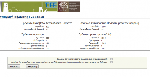 Συνάδελφοι κι εγώ φοβάμαι να πατήσω το κουμπί!! Στην περίπτωση αυτή θα ζητηθεί επιπλέον παράβολο? Η δήλωση εχει εξοφληθει στο 4014/11. Φυσικά το πρόβλημα προέκυψε όταν στον 4014/11 αυξήθηκαν στην πορεία και μετά την εξόφληση του παραβόλου των 500 ευρω τα τ.μ από 45 σε 70. Σημειώνω ότι τα 25 ευρω ήδη εχουν εξοφληθεί. Ευχαριστώ!!! ΥΓ. Αν κατάλαβα από προηγούμενες συζητήσεις δεν θα ζητηθεί τίποτα επιπλέον. Ετσι δεν είναι?