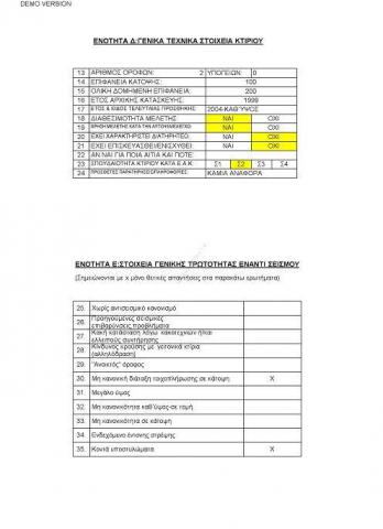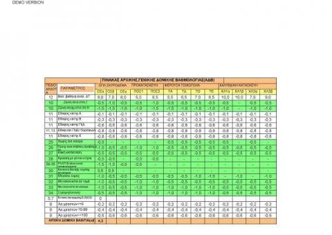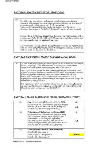 Ευχαριστώ τους συναδελφους για τα καλά τους λόγια. Συνάδελφε letom το πεδίο 30 γραφει:"Κανονική διάταξη τοιχοπλήρωσης σε κάτοψη" που σημαίνει οτι αν υπάρχουν τοιχοποιίες σε τετοια διαταξη ωστε να μην δημιουργούν πρόβλημα[(π.χ.κοντά υποστυλώματα),και όπως λέει το ΦΕΚ αν το προηγούμενο πεδίο:"Κοντά υποστυλωματα" είναι ΝΑΙ τότε δεν μπορεί και το πεδίο 30 να είναι ΝΑΙ(το πρόγραμμα βγάζει μύνημα λάθους)] τότε βαζουμε "ΝΑΙ"(και όπως θα δεις αυτό συνεισφέρει θετικά με +0,5 στην ΑΔΒ). Το πεδίο 5,7 αναφέρεται στην ένταση λειτουργίας και μπορεί(αναλόγως της χρήσης) να έχει τιμές 0, 0.2, 0.5. Ολα αυτά σύμφωνα με τον πίνακα που δημοσιεύεται στην σελίδα 5223 του ΦΕΚ405β/20-2-14.