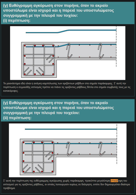 7. Για το αρχικό σου ερώτημα περί αποφυγής σύμπτωσης των οπλισμών, με έκανες να αναρωτιέμαι αν μπορείς απλά να παίξεις με την επικάλυψη. Δεν ξέρω ποια είναι η αρχική πηγή αυτής της μελέτης αλλά φαίνεται ενδιαφέρουσα ανάγνωση για τέτοια προβλήματα: (URL (*για περίπτωση τοιχίου))