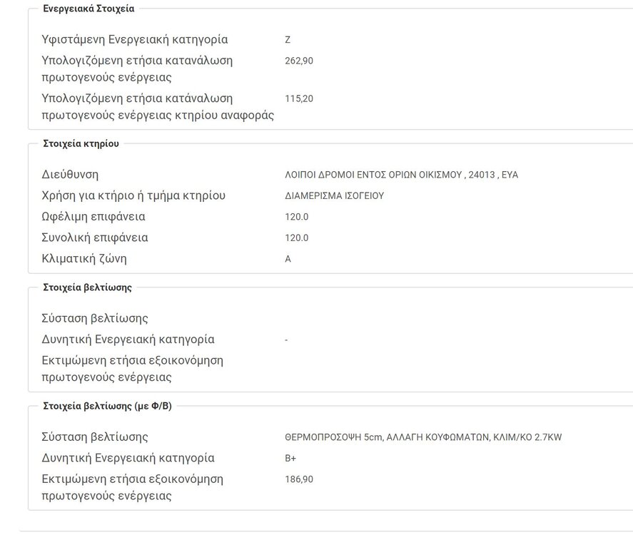 Το buildingcert το διαβάζει-υπολογίζει σωστά το xml το παίρνει σωστά και η ενεργειακή αναβάθμισή είναι σωστή. Το πρόβλημα είναι θεωρώ στην πλατφόρμα εξοικονομώ ότι δεν κάνει έλεγχο από το xml αν τα φ/β είναι εγκατεστημένα στο αρχικό κτίριο. Αυτο τα βλέπει στο σενάριο και νομίζει οτι είναι παρέμβαση και ψάχνει μετά για 2 σενάρια ένα χωρίς και ένα με φ/β, κάτι το οποίο είναι λάθος.
