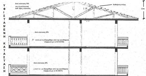 Ευχαριστώ για την απάντηση. Τελικά δεν είναι έτσι τα πράγματα. Πήρα το μεσημέρι το συμβόλαιο σύστασης να δω πώς ακριβώς προσδιορίζεται αυτός ο "αέρας" όπου αναφέρει: ''% εξ αδιαιρέτου 10% στο όλο οικόπεδο που αναλογεί στο δικαίωμα της περαιτέρω κατά οποιοδήποτε τρόπο επεκτάσεως(αέρα) του Ά κτιρίου απεριόριστα, μέχρις όμως καλύψεως ποσοστού 50% (σημ. λόγω καθέτου 50 και 50) του όλου μελλοντικού σ.δ.του ενιαίου οικοπέδου, ήτοι πέραν των σημερινών δεδομένων''. Οπότε τελικά έχω ''καθ' οποιοδήποτε τρόπο επεκτάσεως . . ." Δηλαδή λίγο αόριστο. Αφού δεν μιλάει συγκεκριμένα για την καθ' ύψος επέκταση δύναται να μην γίνει η τακτοποίηση της στέγης. Επίσης υπάρχει αυθαίρετη κατασκευή σε υπόλοιπο τμήμα του ακαλύπτου της καθέτου Α