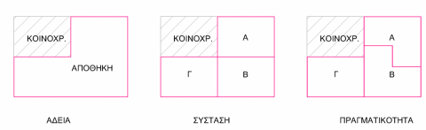 Συνάδερφοι καλησπέρα παραθέτω κ γω ενα αντίστοιχο σκαρίφημα σαν αυτό του/της spek, πρόκειται για αποθήκη προ 75 (που παραμένει αποθήκη) με τα δικά της χιλιοστά α) Επειδή έχω μπερδευτεί με τις απαντήσεις, για να ρυθμίσω με Διαφ.Διαμ. το Α, χρειάζομαι συναίνεση του Β?? β) Δεν επέρχεται αύξηση στα τ.μ. ως προς τα τ.μ. που προκύπτουν από το σχέδιο της Σύστασης, ωστόσο έχω μια μικρή αύξηση ως προς αυτά του συμβολαίου >5%, προφανώς επειδή δεν είχαν τότε προσμετρηθεί οι τοίχοι. Θα αναγράψω τα τ.μ του συμβολαίου ή όπως τα μετράω με 1/2 πάχος τοίχου προς όμορα και ολόκληρο προς κοινόχρηστα? ευχαριστώ πολύ