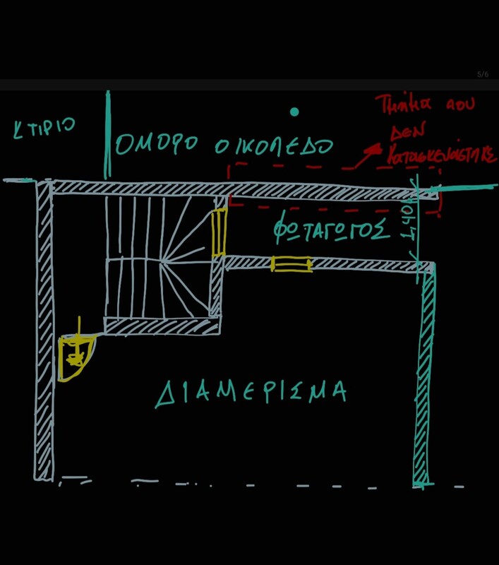 Χρησιμοποιώ για την δημιουργία ψηφιακών σημειώσεων την εφαρμογή Samsung notes(υπάρχουν βέβαια και πολλές άλλες) σε tablet με γραφίδα. Η αλήθεια είναι ότι με βοηθάει πολύ στην οργάνωση των σημειώσεων μου και το προτείνω σε όλους τους συναδέλφους.😉 Αυτός είναι και ο λόγος για τον οποίο προβληματίστηκα και εγώ εξ αρχής.Η αλήθεια είναι ότι ασχολούμαι με την υπόθεση στα πλαίσια υποβολής δήλωσης για το πρόγραμμα εξοικονομώ αυτονομώ ως πολυκατοικία.Επομένως και στα πλαίσια της Ταυτότητας του κτιρίου η αυθαιρεσία θεωρώ ότι πρέπει να τακτοποιηθεί.Απλά το ερώτημα είναι πως ακριβώς..(δλδ ως αυθαιρεσία ΚΑΙ των οριζοντίων ή απλά ως αυθαιρεσία επί των κοινοχρήστων.Την εγκύκλιο 3 του 4178 έιχα και εγώ στο μαυλό μου Πάυλο και για αυτό το λόγο προβληματίστηκα.Τέλος όσον αφορά την γυψοσανίδα που προτείνεις συνάδελφε νομίζω είναι τεχνικά δύσκολη υλοποίηση.Αν παρατηρήσετε στο σκαρίφημα θα δείτε ότι ο φωταγωγός στην κοντή πλευρά είναι ανοιχτός.Αυτό σημαίνει ότι ο τοίχος αυτός που εκτέινεται σε τρεις ορόφους θα έπρεπε να είναι >12μ ψηλός.Ακόμα και από ΟΣ να είχε κατασκευαστεί θα εγειρόταν νομίζω ζήτημα ευστάθειας δεδομένο ότι το μήκος του είναι περίπου 6 μέτρα.Οπότε ακόμα και αν θα ήθελα να προτείνω τη κατασκευή του τμήματος αυτού σήμερα θα είχα νομίζω επιφυλάξεις για την τεχνική λύση που θα πρότεινα.