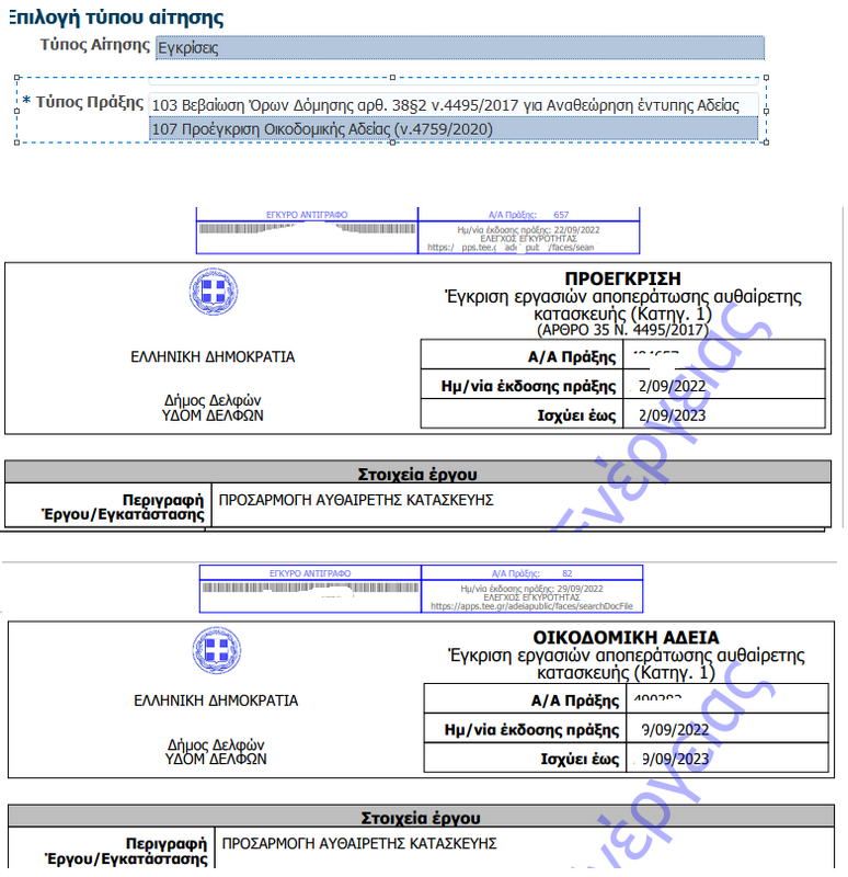 Για το 1 : απάντησα παραπάνω Για το 2 : Καταργήθηκε το παλιό έντυπο . Όταν περαιώσεις την προσαρμογή κάνεις αίτηση για ελεγκτή ( + στο ε-αδεια μέσω του αντίστοιχου πεδίου της έγκρισης ) , ενημερώνεις και την Υπηρεσία που σου επέβαλε τους όρους με τα νέα σχέδια προσαρμογής και περαιώνεις τη δήλωση με αίτημα στο σύστημα για την προσαρμογή ανεβάζοντας το πόρισμα ελεγκτή και τελική έγκριση της Υπηρεσίας που σου επέβαλε τους όρους .