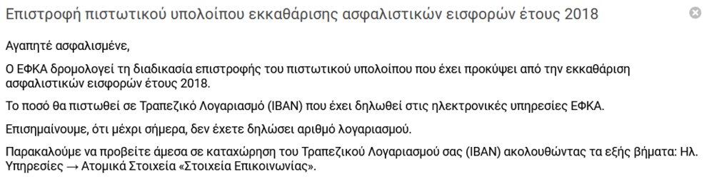 Συνήθως γίνεται αυτόματα ο συμψηφισμός στο επόμενο ειδοποιητήριο , ή στέλνεις μήνυμα στον ΕΦΚΑ για κατάθεση σε λογαριασμό.