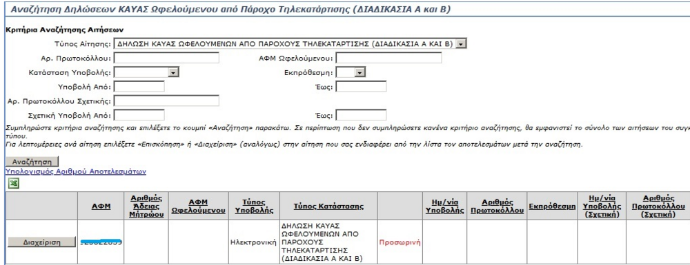 Με τους δικούς μου κωδικούς , αναζητώντας τη δήλωση μου από τον Πάροχο . ( Βλ. 1η γραμμή αναζήτησης στην φόρμα )