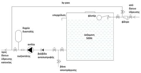 Εγκατάσταση πιεστικού και δεξαμενής νερού εφεδρείας για πόσιμο νερό