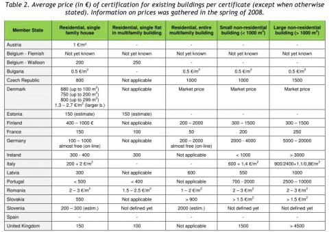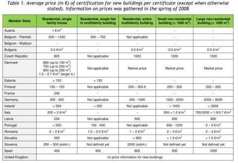 Καλησπέρα Συνάδελφοι, οι κάτωθι πίνακες καταρτίσθηκαν κατόπιν ερεύνης της δράσεως της Ευρωπαϊκής Ενώσεως "Concerted Action-Energy Performance of Buildings". Όλα τα αποτελέσματα της ερεύνης συντάχθηκαν τον Ιανουάριο του 2011. Παραθέτω τους πίνακες με τις αμοιβές: Τα συμπεράσματα της ερεύνης, μεταφρασμένα, έχουν ως εξής: Με επισκόπηση των περιεχομένων των Πινάκων 1&2, παρατηρούμε ότι οι τιμές για τα νέα καθώς και τα υφισταμένα κτήρια είναι εφάμιλλες. Αυτό ανακλά το γεγονός ότι τα περισσότερα Κράτη-Μέλη χρησιμοποιούν την ιδία προσέγγιση και για τις δύο κατηγορίες κτηρίων, όπως το ίδιο επίπεδο ακριβείας του ενεργειακού ελέγχου του κτηρίου, την ίδια διαδικασία υπολογισμού και την ίδια διαδικασία για τη συμπλήρωση και έκδοση του πιστοποιητικού. Οι συλλεχθείσες πληροφορίες παρουσιάζουν ένα πλήθος καταστάσεων, που ανακλά όχι μόνο τις διαφορετικές τεχνικές προσεγγίσεις και πρακτικές στην πιστοποίηση των κτηρίων, αλλά επίσης και τις διαφορετικές κοινωνικοοικονομικές πραγματικότητες των Κρατών-Μελών. Κάποια Κράτη-Μέλη προσφέρουν διαφορετικές δυνατότητες για την πιστοποίηση των κτηρίων, που κυμαίνονται από αυτοεξυπηρετουμένη με απ’ ευθείας σύνδεση πιστοποίηση έως υψηλής ποιότητος πιστοποίηση από διαπιστευμένους αξιολογητές. Η παρουσίαση αφορά μόνον τις τιμές εκδοθέντων πιστοποιητικών υψηλής ποιότητος. Οι διαφορές μεταξύ των τιμών των Κρατών-Μελών είναι εμφανέστερες στην περίπτωση των κτηρίων που δεν προορίζονται για κατοικία και κυμαίνονται από μερικές εκατοντάδες Ευρώ για μικρά και απλά κτήρια, μέχρι και 20.000 Ευρώ ανά πιστοποιητικό για μεγάλα ή/και πολύπλοκα κτήρια. Σύμφωνα με την έρευνα του 2008, και εξετάζοντας μόνον ειδικά την περίπτωση μονοκατοικιών, οι τιμές κυμαίνονταν από 75 Ευρώ έως και 1.000 Ευρώ (για 150 m2). Παρά αυτήν την κατά γενική ομολογία μεγάλη διακύμανση, μία σχετικώς μικρότερη διακύμανση παρατηρείται, μεταξύ 200 Ευρώ και 600 Ευρώ ανά πιστοποιητικό, η οποία καλύπτει το 50% των Κρατών-Μελών της ερεύνης*. Αυτό δύναται να ληφθεί ως χρήσιμη αναφορά για άλλα Κράτη-Μέλη. * Νεότερα στοιχεία (2010) που περιλαμβάνουν περισσότερες χώρες και της εξέλιξη της αγοράς δείχνουν ότι οι τιμές για τις μονοκατοικίες κυμαίνονται από 100 Ευρώ έως 1.250 Ευρώ, αλλά η ίδια τυπική διακύμανση 200 Ευρώ - 600 Ευρώ παραμένει έγκυρη. Στην περίπτωση των πολυκατοικιών, οι τιμές εξαρτώνται από την στρατηγική που έχει υιοθετηθεί από τα Κράτη-Μέλη για την πιστοποίηση. (ένα πιστοποιητικό για κάθε διαμέρισμα ή ένα πιστοποιητικό για όλο το κτήριο), και είναι δυσκολότερο να καθορισθεί μία τάση ή ένα σαφές εύρος. Η πιστοποίηση ξεχωριστών διαμερισμάτων στα νέα κτήρια είναι πιο ξεκάθαρη οικονομική αντιμετώπιση της κοστολογήσεως ανά ξεχωριστή ιδιοκτηρία, δεδομένου ότι τα πιστοποιητικά αυτά συνήθως εκδίδονται στον ίδιο χρόνο από τον ίδιο εμπειρογνώμονα, αν και, στην περίπτωση υφισταμένων πολυκατοικίων, αυτό δε συμβαίνει. Η πιστοποίηση υφισταμένων κτηρίων τείνει να έχει την ιδία τιμή με αυτή των νέων, ή και υψηλοτέρα. Αναλύωντας τις πληροφορίες για έκαστο Κράτος-Μέλος, ειδικά για εκείνα που υιοθετούν την προσέγγιση της αγοράς στις τιμές, είναι σημαντικό να συσχετισθούν οι πληροφορίες αυτές με το αντίστοιχο επίπεδο εφαρμογής και εμπειρίας στην πιστοποίηση κτηρίων. Το 2008, οι περισσότερες χώρες βρισκόντουσαν ακόμα σε πρώιμα στάδια της πραγματικής εφαρμογής και εξελίξεως της αγοράς σύμφωνα με το π