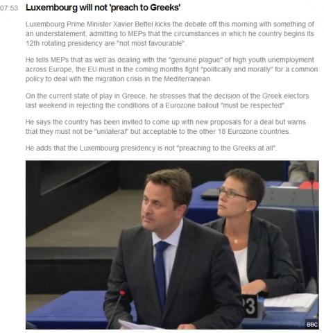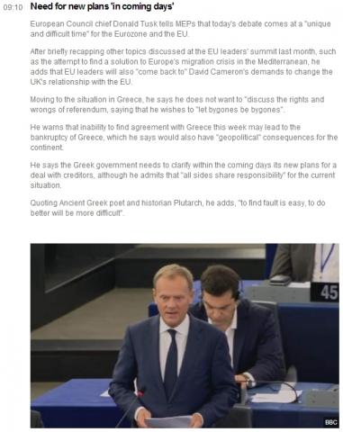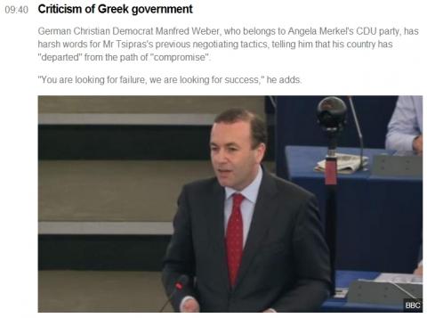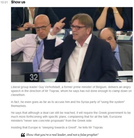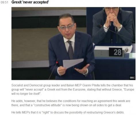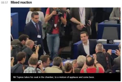 Επειδή αρκετοί Συνάδελφοι και μη (=λογιστής) κατά την πάγια τακτική τους δημιουργούν κλίμα παρουσιάζοντας μονόπλευρα τα γεγονότα...όλα τα τεκταινόμενα (εκτός της ομιλίας Τσίπρα) σε εικόνες: Mixed Reaction Να επισημάνω και πάλι ότι η ECB είναι ένα όργανο INDEPENDENT και APOLITICAL. Στην περίπτωση της Ελλάδος αυτό έχει καταστρατηγηθεί και χρησιμοποιείται ως μέσο εκβιασμού. Επίσης ο Σουλτς δέχθηκε κριτική για τη στάση του. Υπήρχαν τμήματα του Ευρωκοινοβουλίου με σημαίες Ελληνικές, πλακάτ του όχι κ.λπ. όπως αυτή: