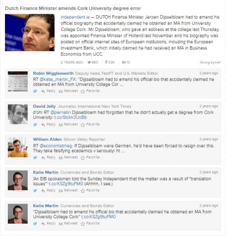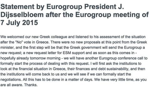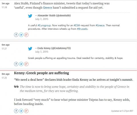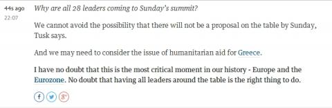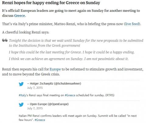 @GabeR "If you believe it then it's not a lie" Και δεν είμαι Σύριζα, ούτε έχω ψηφίσει Σύριζα...αλλά... Και η Wikipedia δεν είναι η πιο αξιόπιστη πηγή, άλλωστε είναι editable. Το συγκεκριμένο πάντως έχει επιβεβαιωθεί μέσω twitter και από ετέρους ξένους δημοσιογράφους. Έλα δέστο κι από δω: http://tinyurl.com/qg3nzvc Το γεγονός υπάρχει και η εξήγηση που δόθηκε είναι ότι έγινε λάθος σε κάποια μετάφραση (ιδέ Katie Martin|Currencies and Bonds Editor):