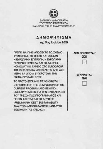 4. Καλησπέρα Συνάδελφοι, Το ερώτημα του ψηφοδελτίου του δημοψηφίσματος είναι εάν Αποδεχόμασθε/Εγκρίνουμε (ΝΑΙ) ή Δεν Αποδεχόμασθε/Δεν Εγκρίνουμε (Όχι) το Σχέδιο Συμφωνίας που Κατέθεσαν Ευρωπαϊκή Επιτροπή (EC), Ευρωπαϊκή Τράπεζα (ECB) και Διεθνές Νομισματικό Ταμείο (IMF) στο Eurogroup της 25/6/15 και αποτελείται από τα δύο (2) κάτωθι έγγραφα: 1. ΜΕΤΑΡΡΥΘΜΙΣΕΙΣ ΓIA ΤΗΝ ΟΛΟΚΛΗΡΩΣΗ ΤΟΥ ΤΡΕΧΟΝΤΟΣ ΠΡΟΓΡΑΜΜΑΤΟΣ ΚΑΙ ΓIA ΤΗ ΣΥΝΕΧΕΙΑ ΑΥΤΟΥ (REFORMS FOR THE COMPLETION OF THE CURRENT PROGRAM AND BEYOND) -> http://tinyurl.com/pam3mnl Σημ.: Είναι το 16σέλιδο που είχε στη Βουλή ο Καμμένος. Παρατήρησα και κάποιες άλλες εκδόσεις όπως αυτό από τη σελίδα της European Commission αλλά και ένα κατάτι μεγαλύτερο που περιλαμβάνει και το "ACTIONS TO BE TAKEN IN CONSULTATION WITH EC-ECB-IMF STAFF" ACTIONS TO BE TAKEN IN CONSULTATION WITH EC-ECB-IMF STAFF.pdf Το κείμενο της European Commission τολμώ να πω ότι μετά από αυτά: δεν έχω εμπιστοσύνη ότι είναι πραγματικά αυτό για το οποίο είπαν "take it or leave it" και ο Tusk είπε "game over": 2. ΠΡΟΚΑΤΑΡΚΤΙΚΗ ΑΝΑΛΥΣΗ ΒΙΩΣΙΜΟΤΗΤΑΣ ΤΟΥ ΧΡΕΟΥΣ ΓΙΑ ΤΗΝ ΕΛΛΑΔΑ (PRELIMINARY DEBT SUSTAINABILITY ANALYSIS) -> http://tinyurl.com/p2hp3nv Και για όποιον ενδιαφέρεται: ΦΕΚ Α 62-ΔΗΜΟΣΙΕΥΣΗ ΣΤΗΝ ΕΦΗΜ. ΤΗΣ ΚΥΒ. ΑΠΟΦΑΣΗΣ ΟΛΟΜΕΛΕΙΑΣ ΒΟΥΛΗΣ ΕΛΛΗΝΩΝ ΓΙΑ ΔΗΜΟΨΗΦΙΣΜΑ ΓΙΑ ΚΡΙΣΙΜΟ ΕΘΝΙΚΟ ΘΕΜΑ ΣΥΜΦΩΝΑ ΜΕ ΤΟ ΑΡΘΡ. 44 ΠΑΡ. 2 ΕΔ. Α ΤΟΥ ΣΥΝΤΑΓΜΑΤΟΣ (28-6-15) -> http://tinyurl.com/qfr2exa ΧΡΗΜΑΤΟΔΟΤΙΚΕΣ ΑΝΑΓΚΕΣ&ΧΡΟΝΟΔΙΑΓΡΑΜΜΑ ΕΚΤΑΜΙΕΥΣΗΣ ΠΟΥ ΣΥΝΔΕΕΤΑΙ ΜΕ ΤΗΝ ΟΛΟΚΛΗΡΩΣΗ ΤΗΣ ΠΕΜΠΤΗΣ ΑΞΙΟΛΟΓΗΣΗΣ (ACTIONS TO BE TAKEN IN CONSULTATION WITH EC/ECB/IMF STAFF) -> http://tinyurl.com/pqxcqs9 Λαμβάνοντας υπ' όψιν ότι: Ο Τσίπρας φιλοτιμήθηκε να μας ρωτήσει μία φορά μετά από πόσα χρόνια την άποψή μας. Αρκετοί κάνουν σαν κακομαθημένα τεμπέλικα κ@λόπαιδα. Άραγε έπρατταν καλώς όλοι εκείνοι που μας εξαπατούσαν στο 100% προκειμένου να υφαρπάξουν την ψήφο μας και κατόπιν να κάνουν ό,τι γουστάρουν χωρίς να μας λογαριάζουν καθόλου ; Xωρίς να υπάρχει καμμία απολύτως σύγκλιση με τις προεκλογικές εξαγγελίες τους ; Μάλιστα δε, όσες φορές διαμαρτυρηθήκαμε μας πλακώσαν στο ξύλο και τα χημικά σε καταστάσεις όπου η αφορμή έναντι των ενστόλων είχε δοθεί από παρακρατικά πιόνια δικά τους. Ένας άνθρωπος βρέθηκε να θέλει να σπάσει το κατεστημένο αυτό και τον έχουμε φλομώσει στη μ@λ@κία. Ένας άνθρωπος φαίνεται να βρέθηκε και να επιθυμεί να δώσει το λόγο στο λαό. Απ' ότι φαίνεται τους χαλάει την πιάτσα. Δεν είναι από το Χάρβαρντ δεν είναι από το LSE, δεν είναι από τζάκι, δεν τον κρατούν από πουθενά - και το αυτό φαίνεται ότι ισχύει σίγουρα και για τη Ζωή και γι' αυτό τα λέει φόρα-παρτίδα - και υπολογίζει το λαό του. Τους "ξέφυγε" αλλά θα φροντίσουν να μην αναδειχθεί ξανά τέτοιος πολιτικός που να χαλάει την πιάτσα μόλις απαλλαγούν από αυτόν. Στην Ελβετία κάνουν δημοψήφισμα μέχρι και για τα παγκάκια της πλατείας και δε φαντάζομαι ούτε να το κάνουν ένα χρόνο πριν ούτε να δίνουν κανένα τόμο για ανάλυση στους πολίτες πριν ψηφίσουν. Όλοι έχουν δικαίωμα στο Δημοψήφισμα και όλη η Ευρώπη καμαρώνει την Αγγλία, την Ισλανδία, την Ιρλανδία, την Ελβετία κ.λπ. που εφαρμόζουν Δημοκρατικά Δημοψηφίσματα. Όταν το πράττει η Ελλάδα είναι μίασμα. Πρέπει να επανέλθουμε στην τάξη. Είναι αντισυνταγματικό επιπροσθέτως. Το είπε άλλωστε και ο ΑΠΟΛΥΤΩΣ-ΕΓΩ Βενιζέλος. Όταν βλέπω τον επίτιμο κατόπιν πολυετούς φορτίσεως να κατεβαίνει στο Σύνταγμα (!?), όταν βλέπω το μουγκό Καραμανλή να μιλάει επιτέλους, όταν βλέπω να επιστρατεύεται το σύστημα τον παροπλισμένο ψευδοεπιτυχημένο σοβαροφανή εκ του συστήματος επιχρυσωμένο Υπουργού Οικονομικών Κανελλόπουλο επί ΠΑΣΟΚ ο