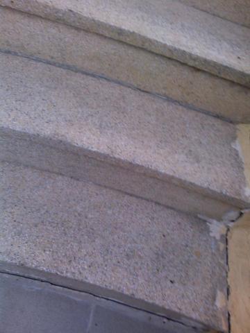 γ) Στην αλλη σκαλα εμφανιζεται ρωγμη στο πλατυσκαλο και στους δυο πλευρικους τοιχους της σκαλας , πραγμα το οποιο σημαινει οτι η σκαλα εχει κοπει λογω καθιζησεων πιθανοτατα. μπορει να γινει κατι αναλογο με την περιπτωση1(φωτος 3,4,5,).