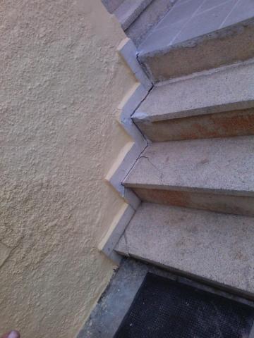 α) Η ρωγμη που εμφανιζεται μεταξυ της σκαλας και της βασης στηριξης αυτησοφειλεται πιθανοτητα σε καθιζηση, για αυτο και τα σοβατεπια της σκαλας πανω ακριβως απο τη βαση στηριξης εχουν αποκοληθει , μπορει να γινουν τσιμεντοενεσεις με μη συρικνουμενο τσιμεντοειδες στη ρωμη που υπαρχει κατω απο τη σκαλα και τα σοβατεπια να στερεωθουν στα σκαλοπατια με μαστιχι πολυουρεθανης , ωστε να λυθει το προβλημα εφοσον δε συνεχιστει η καθιζηση??(φωτο 1,2)