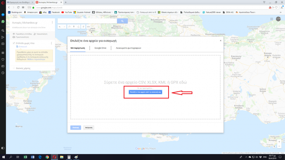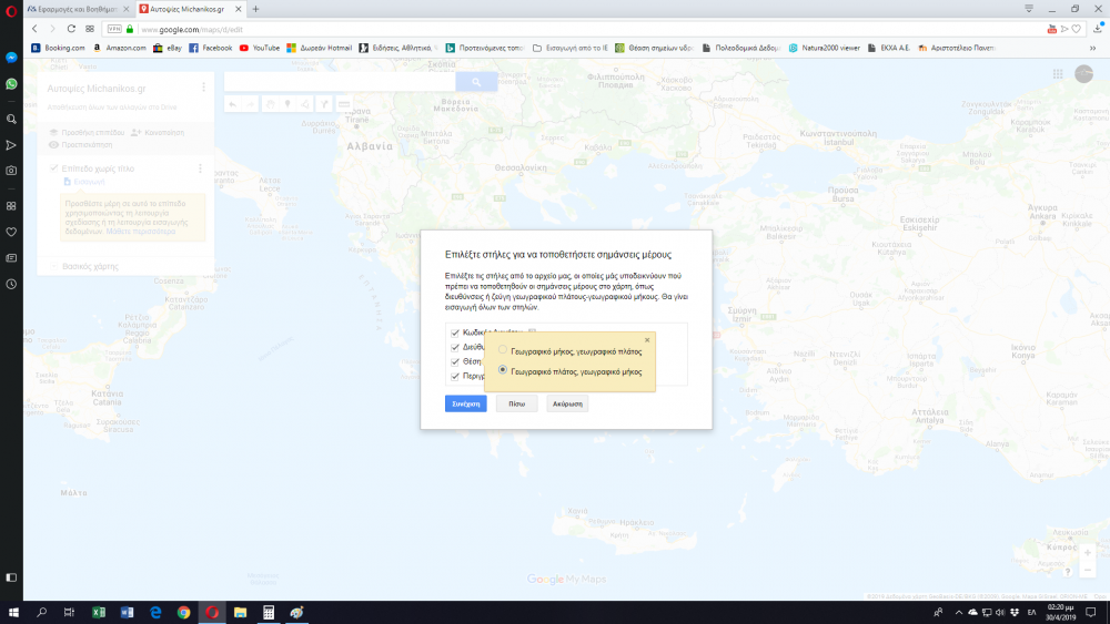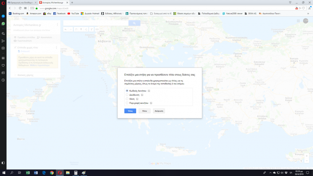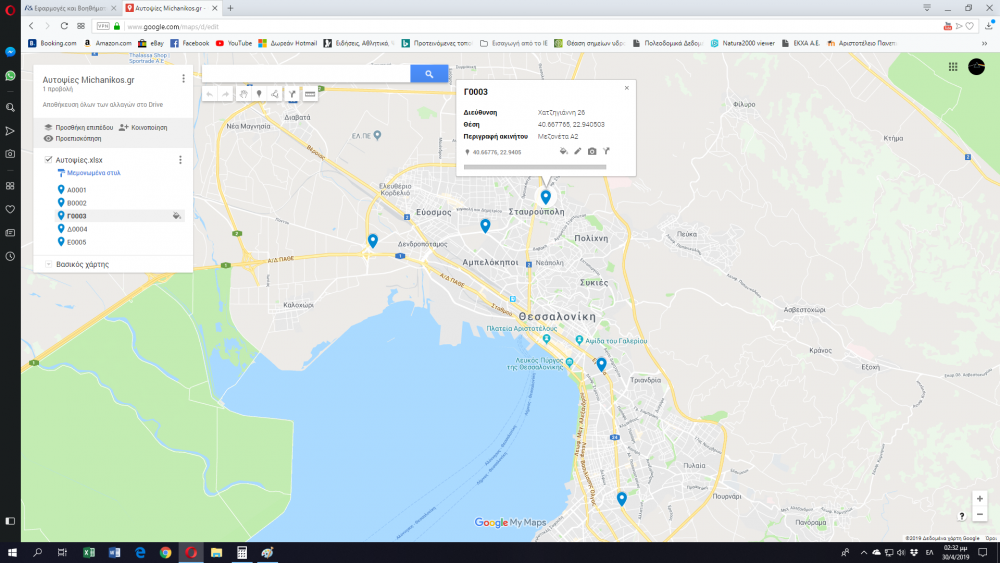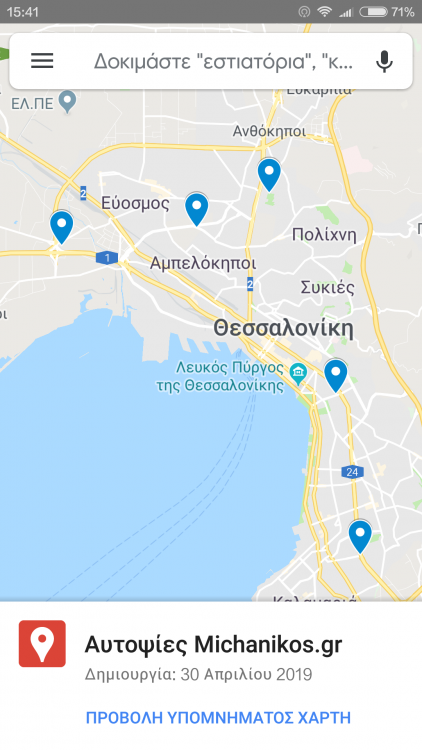 Οργάνωση αυτοψίας Το πρώτο θέμα που με απασχόλησε είναι η οργάνωση της αυτοψίας. Επειδή έχω φτάσει σε σημείο να επισκεφτώ πάνω από δέκα ακίνητα σε μία μέρα, έπρεπε να βρω έναν τρόπο ώστε να γίνει αυτό με έναν τρόπο, που θα με γλίτωνε από άσκοπες μετακινήσεις. Ήθελα δηλαδή να έχω μία άμεση εικόνα των ακινήτων, που θα έπρεπε να επισκεφτώ, ώστε να οργανώσω το ταξίδι μου, την οποία θα μπορούσα να έχω και στο κινητό μου, χρησιμοποιώντας την εφαρμογή των χαρτών. Την λύση την βρήκα με το mymaps της google, που είναι ουσιαστικά μία διαδικτυακή εφαρμογή και όσοι έχουν gmail, μπορούν να τη χρησιμοποιήσουν δωρεάν. Πριν φτάσουμε εκεί όμως, το πρώτο πράγμα που πρέπει να γίνει, αφού έχουμε εντοπίσει τις θέσεις των ακινήτων μας, είναι να φτιάξουμε έναν πίνακα στο excel, με διάφορα στοιχεία που μας ενδιαφέρουν. Προσωπικά φτιάχνω έναν πίνακα όπως στο παρακάτω φύλλο: Αυτοψίες.xlsx Έπειτα πηγαίνω στη διεύθυνση του my maps της google και πατάω τη "Δημιουργία Νέου Χάρτη" στην επόμενη εικόνα: 1. Δίνω όνομα στον χάρτη και 2. Πατάω "Εισαγωγή" για να επισυνάψω τον πίνακα excel, που έφτιαξα πριν οπότε βγαίνει η επόμενη οθόνη, όπου και επιλέγουμε το αρχείο excel, από τη θέση που το έχουμε αποθηκεύσει. Αφού λοιπόν επιλέξουμε το αρχείο, ακολουθεί η επόμενη οθόνη, όπου επιλέγουμε όλα τα στοιχεία που θέλουμε να εμφανιστούν στον χάρτη, ενώ για τις συντεταγμένες επιλέγουμε "Γεωγραφικό Πλάτος, Γεωγραφικό Μήκος" και πατάμε "Συνέχιση". ακολουθεί μία ακόμη οθόνη, στην οποία μας ζητείτε να επιλέξουμε μία στήλη, που θα αποτελεί τον τίλο των σημάνσεων. Προσωπικά επιλέγω τον "Κωδικό Ακινήτου" και πατάμε "Τέλος". Έχουμε πλέον δημιουργήσει τον χάρτη μας. Τα ακίνητα που πρέπει να επισκεφτούμε είναι οι μπλε κουκκίδες, που όποιος θέλει μπορεί να τους αλλάξει χρώμα και σχήμα, ενώ αν πατήσουμε πάνω σε μία από αυτές, θα δούμε τις πληροφορίες του ακινήτου. Το ενδιαφέρον εδώ είναι ότι ο συγκεκριμένος χάρτης αποθηκεύεται στον λογαριασμό μας στο google drive και φυσικά είναι διαθέσιμος για να τον χρησιμοποιήσουμε από την εφαρμογή των χαρτών στο κινητό μας. Αφού λοιπόν ανοίξουμε την εφαρμογή "Χάρτες" στο κινητό μας, πάμε στην επιλογή "Τα μέρη σας" και επιλέγουμε το "Χάρτες" και έπειτα τον χάρτη που φτιάξαμε, ο οποίος και θα είναι το υπόβαθρο για όσο τον χρειαζόμαστε, ενώ θα μπορούμε να βάλουμε το κινητό μας να μας καθοδηγήσει στις θέσεις, που θέλουμε να πάμε. Επιπλέον, με τον συγκεκριμένο τρόπο υπάρχει η δυνατότητα να μοιραστούμε τον χάρτη με κάποιον συνεργάτη μας, που μπορεί να κάνει και αυτός κάποιες αυτοψίες.