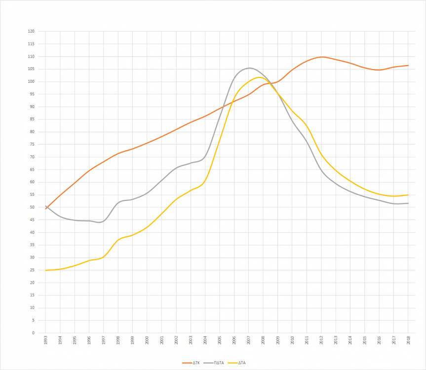 Καλημέρα! Κατά τη γνώμη μου αυτό που αναζητά ο φίλος μας στην πραγματικότητα είναι η ονομαστική αξία, δηλαδή η αξία που θα συναντούσε π.χ. σε μία αγγελία της εποχής. Για το συγκεκριμένο έτος (1993), είτε χρησιμοποιήσει τον Δείκτη Τιμών Ακινήτων (ΔΤΑ), είτε τον Δείκτη Τιμών Καταναλωτή (ΔΤΚ) θα καταλήξει περίπου στο ίδιο αποτέλεσμα. Ο Πραγματικός Δείκτης Τιμών Ακινήτων (ΠΔΤΑ), κατά τη γνώμη μου αντιπροσωπεύει άλλο πράγμα, την αξία του χρήματος ως προς την αξία του ακινήτου ή αλλιώς την αγοραστική αξία του χρήματος και δεν μας δίνει πληροφορίες για την τιμή του ακινήτου. Στο παρακάτω διάγραμμα έβαλα τους ετήσιους δείκτες τιμών, που αφορούν τη Θεσσαλονίκη για να κατανοήσουμε λίγο τα πράγματα. Βλέπουμε την εξέλιξη των δεικτών από το 1993 έως το 2018. Όπως είδα στη βιβλιογραφία ο ΠΔΤΑ = ΔΤΑ / ΔΤΚ Εμάς μας ενδιαφέρουν οι τιμές του κάθε δείκτη σε σχέση ας πούμε με το 2018, ώστε να υπολογίσουμε τον πολλαπλασιαστή, που θα ανάγει τη σημερινή αξία (2018) σε παρελθοντική. Έκανα έναν πίνακα για διάφορες χρονιές. Όπως φαίνεται, ουσιαστικά για το έτος 1993, είτε ο ΔΤΑ, είτε ο ΔΤΚ θα μας δώσουν παρόμοιο αποτέλεσμα. Ο ΠΔΤΑ φαίνεται να προσεγγίζει τον ΔΤΑ κατά τις περιόδους με χαμηλό πληθωρισμό, που είναι λογικό αφού όπως είπαμε και παραπάνω μας δείχνει αγοραστική δύναμη. Σε περιόδους με υψηλό πληθωρισμό απέχει κατά πολύ από τον ΔΤΑ. Από την άλλη, ο ΔΤΚ, ο οποίος έχει μία γενικά σταθερή πορεία, αποκλίνει αρκετά από το 2004 και έπειτα και μέχρι σήμερα, αφού ο ρυθμός αύξησης αλλά και μείωσης των τιμών των ακινήτων, ήταν κατά πολύ μεγαλύτερος από την αύξηση του πληθωρισμού (κλίση καμπύλης). Μπορεί να συμβεί, μέσα σε 26 χρόνια υπάρχουν περιοχές που αναβαθμίστηκαν και άλλες που υποβαθμίστηκαν. Προφανώς, όλοι αυτοί οι παράγοντες θα πρέπει να λαμβάνονται υπόψη. Οι δείκτες τιμών είναι κάποια αντικειμενικά εργαλεία. Επιβάλλεται να λαμβάνονται και άλλοι παράγοντες υπόψη, είτε αυξητικοί, είτε μειωτικοί. Παρακάτω επισυνάπτω και το excel, με τα στοιχεία και το διάγραμμα. Βιβλίο1.xlsx