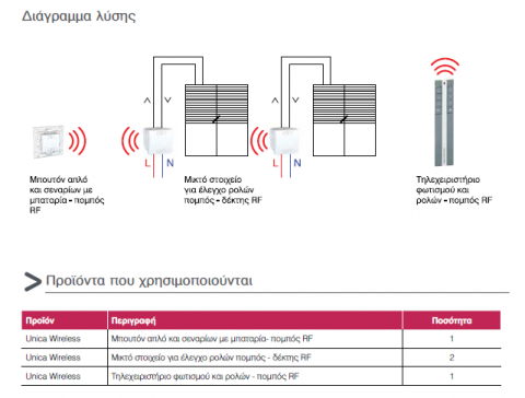 Υπάρχει και η λύση της Berker το σύστημα Rollotec Kαθως και απο την Schneider Electric το Unica Wireless με RF