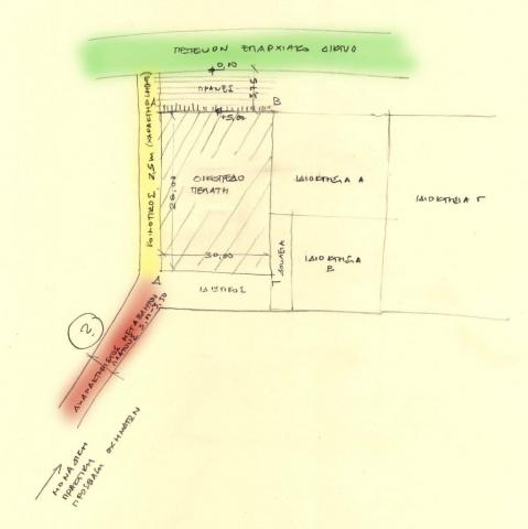 Συνάδελφοι, έχω το εξής θέμα. Έχω αναλάβει τον σχεδιασμό κατοικίας σε οικόπεδο εντός των ορίων οικισμού προϋφιστάμενου του 23. Όπως φαίνεται και στο επισυναπτόμενο σκαρίφημα το οικόπεδο έχει πρόσωπο επί επαρχιακής οδού πρωτεύοντος επαρχιακού δικτύου, ανατολικό όριο άλλες ιδιοκτησίες, δυτικά κοινοτικό δρόμο χαρακτηρισμένο από δικαστήριο πλάτους 2,5 μ και νότια από μη χαρακτηρισμένο δρόμο μεταβλητού πλάτους (2,8 με 3,8 μ) ο οποίος όμως εμφαίνεται σε όλους τους δημοσιευμένους χάρτες και αποτελεί τον μοναδικό τρόπο πρόσβασης οχήματος στο οικόπεδο αλλά και στις ανατολικές όμορες ιδιοκτησίες. Θεωρώ δεδομένο ότι το οικόπεδο είναι άρτιο και οικοδομήσιμο όπως επιβεβαιώνει και ο τοπογράφος τόσο λόγο παλαιότητας, επιφανείας όσο και επειδή έχει πρόσβαση επί επαρχιακού δικτύου. Οι ερωτήσεις μου είναι οι εξής: 1.Μεταξύ του βόρειου ορίου (προσώπου) επί της επαρχιακής οδού (πράσινη στο σκίτσο) και της οδού υπάρχει πρανές υψομετρικής διαφοράς περί τα 7 μέτρα και απόσταση περί τα 3,50. Θεωρώ πως δεν μπορώ να έχω είσοδο - έξοδο από εκεί με διαμόρφωση του πρανούς γιατί αυτό πρακτικά δεν μου ανήκει. Ισχύει κάτι τέτοιο; 2. Το θέμα είναι ότι ο βασικός δρόμος πρόσβασης και αποκλειστικός για οχήματα είναι ο "κόκκινος στο σκίτσο" . Από την στιγμή που δεν υπάρχει όμως χαρακτηρισμός για αυτόν πως καλύπτομαι πολεοδομικά να έχω σίγουρα είσοδο - έξοδο οχημάτων και ιδανικά και κεντρική είσοδο στο ακίνητο (εκεί είναι ούτως ή άλλως σήμερα). Ο δρόμος αυτός φαίνεται σε όλους τους δημοσιευμένους χάρτες και χρησιμοποιείται εν τοις πράγμασι ως δημόσιος αλλά δεν υπάρχει επισήμα χαρακτηρισμός. Στις υπηρεσίες φάνηκαν πολύ χαλαροί με το θέμα χαρακτηρισμός και πρόσβαση στο οικόπεδο, το ίδιο και ο τοπογράφος ο οποίος είναι ντόπιος. Απλά θα ήθελα μία συμβουλή για το πως να το χειριστώ 3. Ο "κίτρινος στο σκίτσο" χαρακτηρισμένος κοινοτικός πλάτους 2,5 μ. μπορεί ενδεχομένως να αποτελέσει την επίσημη πρόσβαση πεζών στο επίπεδο της αδείας και ενδεχομένως δεύτερο πρόσωπο για τα δίκτυα αλλά για την τεκμηρίωση ενός parking στο οικόπεδο είναι πρακτικά αδύνατο. Ευχαριστώ πολύ. Κάθε στοιχείο θα αποτελούσε εξαιρετική βοήθεια από εσάς Σημείωση: Ο ιδιωτικός δεξιά του "κόκκινου" ήταν μέρος του οικοπέδου μου το οποίο με ιδιωτικό συμφωνητικό παραχωρήθηκε ως κοινόχρηστα πρόσβαση στις ιδιοκτησίες στο ανατολικό όριο