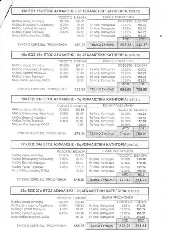 Αυτές είναι οι ασφαλιστικές κλάσεις για τους 'νέους', τους μετά το 1993 ασφαλισμένους συναδέλφους...Γιατί άραγε ο Πίνακας 1 : Εισφορές Ελέυθερων Επαγγελματιών στο site του ΤΣΜΕΔΕ από προχθές την Δευτέρα έχει εφεύρει την (1η άνω 5ετιας) κλάση και μας δίνει την δυνατότητα να τυπώσουμε μόνο την πρώτη σελίδα και όχι τις επόμενες κλάσεις; Στους προ του 1993, το ειδοποιητήριο ήρθε χωρίς καμιά ηλεκτρονική αίτηση και το ποσό είναι 2075ευρώ, μετά από την εξαίρεση από την καταβολή πρόσθετης εισφοράς. Έπρεπε μήπως να εφευρεθεί η 'μυστήρια' νέα κλάση, για να πληρώνουμε και εμείς της κύριας σύνταξης (Κατ. 1) και ειδικής προσαύξησης (Κατ. 1) για να πληρώνουμε ισόποσο ποσό και να μην διαμαρτυρόμαστε; Θα πάρουμε (αν) την ίδια σύνταξη συνάδελφοι, τι θα γίνει με αυτούς που χρωστούν και τα μπιλέτια θα έρθουν στις 3000ευρώ τέλη Αυγούστου; nees_eisfores.xls