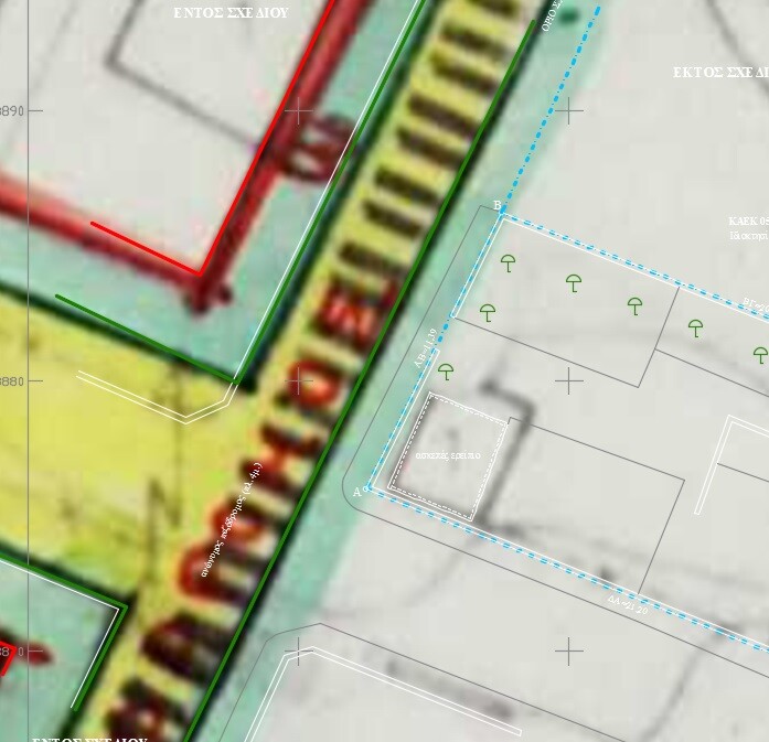 Συνάδελφοι θα ήθελα και γω τα φώτα σας, πάνω στο θέμα.. αγροτεμάχιο τέμνεται από όριο του σχεδίου πόλης.. επιφάνεια ~1000 τ.μ., ρυμοτομούμενο 65 τ.μ. (όπως στη φώτο).. Ο δρόμος είναι μη διανοιγμένος.. Από το ρυμοτομικό δε προκύπτει αν είναι Ρ.Γ ή Ο.Γ.. (στο απέναντι ο.τ. ταυτίζονται οικοδομική και ρυμοτομική) Σχέδιο προ 83 και χρόνος δημιουργίας οικοπέδου το 1937.. Το εκτός σχεδίου είναι μέσα σε αρχαιολογική ζώνη... Παίρνει όρους δόμησης από το απέναντι ΟΤ ή είναι μη άρτιο και μη οικοδομήσιμο? ευχαριστώ!! -