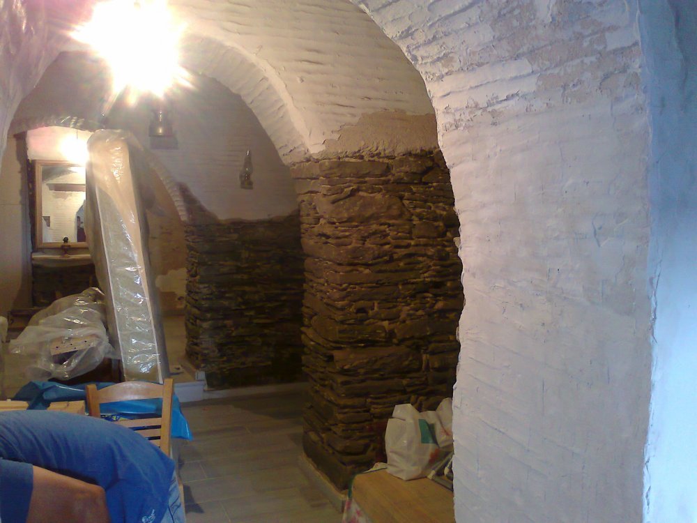 Καλησπέρα συγγενικό μου πρόσωπο αντιμετωπίζει το πρόβλημα ανοδικής υγρασίας στους τοίχους του ισογείου όπως φαίνεται στις φωτογραφίες. Το σπίτι είναι δυώροφο, πέτρινο και βρίσκεται σε άνομβρο νησί των Κυκλάδων με έτος κατασκευής το 1920 περίπου. Οι τοίχοι του ισογείου είναι όλοι μεσοτοιχία με γειτονικά ακίνητα (εκτός από το βόρειο τμήμα) οπότε αποκλείονται εξωτερικές εργασίες. Τα κυριότερα προβλήματα εμφανίζονται στην δυτική πλευρά της τοιχοποιίας. Το σπίτι και ο χώρος του ισογείου αερίζεται μόνον δύο μήνες το χρόνο το καλοκαίρι. Στον επάνω όροφο δεν εμφανίζονται προβλήματα. Το τελευταίο απλό σοβάτισμα που φαίνεται και στις φωτογραφίες έγινε το 2008 και οι πρώτες αποκολλήσεις ξεκίνησαν από το 2011 και μετά. Είμαι λοιπόν σε αναζήτηση των αιτιών του προβλήματος και εύρεσης προτάσεων που θα δώσουν λύση στο πρόβλημα, είτε μόνιμη είτε έστω λίγο πιο μακροχρόνια. Από την αναζήτηση στο forum βρήκα παλιές προτάσεις από τον Ροδοπουλος και τον Charkiolakis Kostas αλλά δεν γνωρίζω κατα πόσο μπορούν να εφαρμοστούν και στην συγκεκριμένη περίπτωση με επιτυχία. Αν απαιτείται από τους κανόνες του forum ας μεταφερθεί το θέμα στην ενότητα Αρχιτεκτονικά - Οικοδομική.