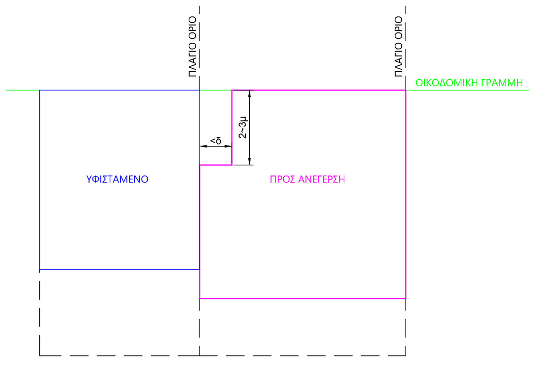 Καλησπέρα, αναζητώντας κάτι επί εσοχών, έπεσα στο προκείμενο topic. Αυτό που αποτυπώνεται στο παραπάνω σχέδιο γιατί είναι εσοχή κτιρίου? Για να εισέχει "κάτι" πρέπει πριν κ μετά απ' αυτό κάτι να προεξέχει. Στο παραπάνω, επί της πρόσοψης, το κτίριο σχεδιάστηκε με απόσταση από το πλάγιο όριο. Δεδομένου ότι αυτό ειναι το περίγραμα του κτιρίου (σε απόσταση από το όριο) και ΑΝ τα λέω καλά θα έπρεπε να απέχει δ από το πλάγιο όριο. Αντιθέτως εάν στην πρόσοψη κολλούσε στο όριο κ λίγο πιο πίσω έκανε την όποια εσοχή, αυτή θα ήταν όντως εσοχή καθώς πρίν κ μετά από αυτήν το περίγραμμα του κτιρίου θα προεξείχε της εσοχής του. Με άλλα λόγια, τέτοιες γωνιακές υποχωρίσεις, χωρίς προεξέχον τμήμα εκατέρωθεν της "εσοχής", γιατί είναι εσοχές κ όχι υποχωρήσεις που οφείλουν να αφήσουν δ..? Χάνω κάτι? -