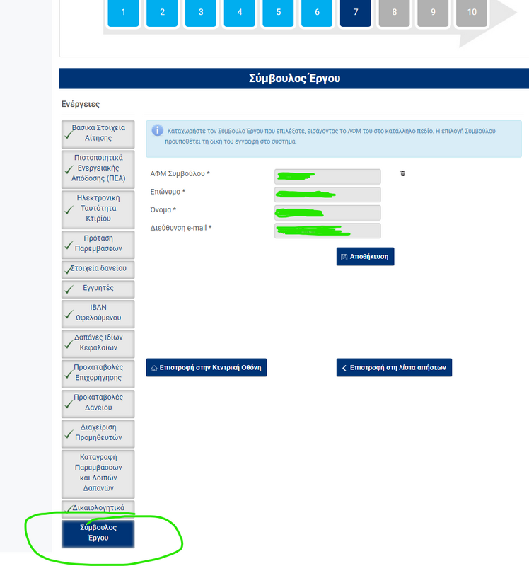 Α ΠΕΑ εβγαλε ο μηχανικος του το εχεις πληρωσει σωστα? ειναι αναλογα τα τμ και έως 400€ Ηλεκτρονικη ταυτοτητα την εβγαλε ο μηχανικός? του την εχεις πληρώσει σωστα? Οσο για το εξοικονομω ο Συμβουλος ειναι 200 ευρω τα οποια τα παιρνει κατευθειαν απο το προγραμμα, Αλλα αν θες να αλλαξεις θα πρεπει να τον πληρωσεις το ποσο η μερος αυτου, θα πρεπει να μιλησεις μαζι του.