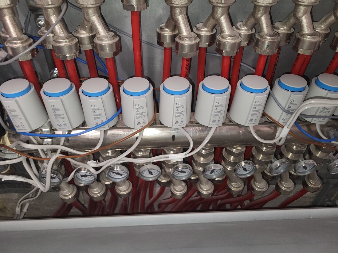 Κάθε χώρος έχει ξεχωριστό ασυρματο sensorα θερμοκρασίας, υγρασίας CO2 (κ το μπανιο). Ο server HA διαβάζει τις μετρήσεις ανά δωμάτιο κ ανάλογα απο την επιθυμητη θερμοκρασια που εχω ορισει από το κινητό για κάθε χώρο δίνει εντολή για να ανοίξουν η να κλείσουν τα εκάστοτε κυκλώματα (είναι 2 ανά χωρο) Γίνονται όλα ασύρματα.