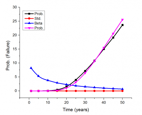 Χρήστο ,αφού διάβασα τα fib μπορώ να πώ (αν και μου τη δίνει στα νεύρα), οτι έχεις δίκιο.Τελικά έχεις δίκιο στο ότι μπορείς να θέσεις ένα (β) και να τρέξεις όλη την ανάλυση σου για τις επεμβάσεις.Είδα οτι κάποιες εταιρίες έχουν εμπειρικούς πίνακες π.χ β=2 για εύρος ς 10-15 χρόνια προστασίας σε διάβρωση.Επειδή σε έχω "κράξει" γενικά σε διάφορα, οφείλω να αποκαταστήσω αυτό το κομμάτι.Φυσικά η εκλογή του β δεν μπορεί να βασίζεται απλά σε πίνακες τυποποιημένους είτε αυτοί αφορούν το ΕΝ206 - 1 ( πιθανολογική προσέγγιση) είτε απο πίνακες εταιριών προϊόντων, αλλά απο το πιθανολογικό μοντέλο που θα τρέξουμε εμείς σύμφωνα με τις μετρήσεις που έχουμε.Αυτό που κατάλαβα είναι οτι για διάφορες μορφές αστοχίας π.χ 1. Time to corrosion initiation 2.Propagation 3 .Bending Failure. 4.Shear Failure. 5.Bond Failure. 6.Plastic hinge formation Εάν R το όριο αντοχής η εξίσωση είναι Z = R-R'>=0. Υπολογίζω το β απο probabilistic analysis -> Pf.Συνεπώς μπορώ να δώ στο χρόνο πώς μειώνεται το β.Θέτω κατώτερο αποδεκτό όριο για SLS και ULS για τη χρονική διάρκεια της προστασίας που θέλω π.χ 20-30 χρόνια και βλέπω αν το β πέφτει κάτω απο το ελάχιστο όριο.Αν είναι τότε κάνω παρεμβάσεις και ξαναυπολογίζω το μοντέλο μέχρι να βρώ το κατάλληλο β. Αν και ήταν επίπονη η προσπάθεια στο να τα διαβάσω αυτά, σε ευχαριστώ Βάζω και κάποια αποτελέσματα απο ένα προγραμματάκι που έφτιαξα....τώρα αν λειτουργεί θα σου πώ σε λίγες μέρες;