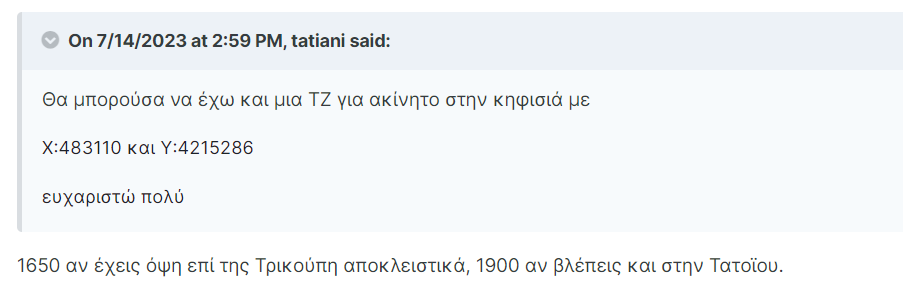 3. Καλησπέρα σας, θα ήθελα ΤΖ για ακίνητο στην Πεύκη με Χ:481538 και Υ: 4212319 σας ευχαριστώ πάρα πολύ