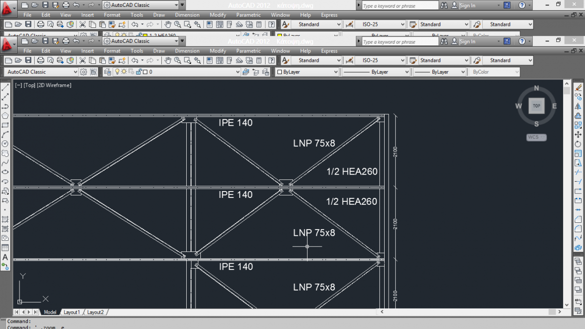 Η απόσταση ζευκτών είναι 7,5 μέτρα. Το ζευκτό στο κάτω πέλμα δεν το πήγα μέχρι το τέλος γιατί δεν το έχω τελειώσει σε αυτό το σημείο. Ναι έχω λάβει υπόψιν τις αξονικές. Στο ζευκτό θα βάλω ένα έλασμα στο άνω πέλμα και από εκεί θα φεύγει ο Α/Σ. Το θέμα μου είναι στην τεγίδα το έλασμα πού να το βάλω ώστε να αποφύγω το γεγονός να μην είναι συνεπίπεδα. Μπορώ πχ να βάλω το έλασμα στο κάτω πέλμα της τεγίδας από την εσωτερική πλευρά της διατομής;