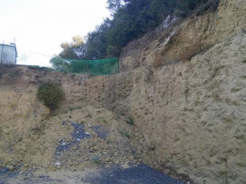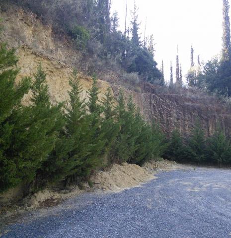 Και για να μην μιλάμε μόνο θεωρητικά, παράδειγμα από αντίστοιχο φρεσκο-ανοιγμένο πρανές σε παρόμοια αργιλομαργαικά υλικά (νεκροταφείο Πήδημα Μεσσηνίας): Είναι ολοφάνερο το πόσο ευκολοδιάβρωτα ειναι αυτά τα υλικά και τι προβλήματα σταθερότητας έχεις αν δεν καλύψεις το πρανές. Πρόσθεσε και μια κυκλική ολίσθηση και τις σεισμικές ωθήσεις και καταλαβαίνεις ότι δεν υπάρχει "οικονομική" λύση χωρίς κινδύνους.