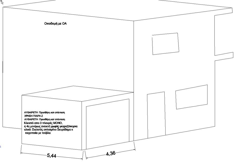 αυθαίρετη Προσθήκη κατ επέκταση σε οικοδομή με ΟΑ εντός σχεδίου. Η αυθαίρετη προσθήκη εχει χρήση γκαράζ με 1 (είσοδο) πλευρά ΜΟΝΙΜΩΣ ανοικτή (δεν εχει γκαραζόπορτα κλπ). Φέρων από οπλισμένο σκυρόδεμα και τοιχοποιία με τούβλα και επιχρισμένο. Παραβιάζει και Δ. Πάει με αναλυτικό απ οσα διαβάζω σωστά; Ευχαριστω