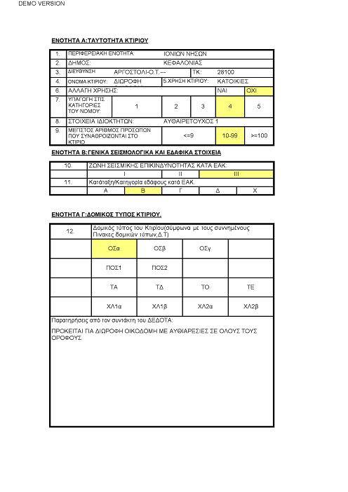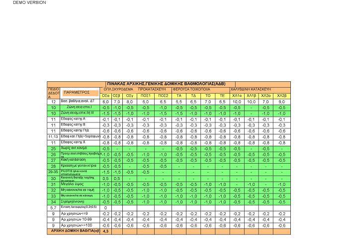 Πρόκειται για ένα πρόγραμμα το οποίο εισάγοντας όλα τα απαραίτητα δεδομένα σύμφωνα με το ΦΕΚ 405Β/20-2-2014 υπολογίζει Αρχική και Τελική Δομική τρωτότητα του κτιρίου και παράγει όλα τα σχετικά εντυπα του ΔΕΔΟΤΑ και τον σχετικό ΠΙΝΑΚΑ(ΑΔΒ).Ολοι οι υπολογισμοί γίνονται αυτόματα με το πάτημα ενός κουμπιού και ταυτοχρονα δημιουργούνται έτοιμες προς εκτύπωση οι 5 σελίδες(40 πεδία) του ΔΕΔΟΤΑ.Οι επιλογές εκτύπωσης είναι πολλές(απευθείας εκτύπωση,εξαγωγή σε word,excel,jpeg αλλά και σε pdf για άμεση αποστολή στο σύστημα του ΤΕΕ). -------------------------------------------------------------------------------------------------------------------------------------------------------------------------- Η νέα έκδοση(v.1.5) είναι δωρεάν αλλά προαιρετικά μπορείτε να καταθέσετε το ποσό των 30€(συμπεριλαμβανομένου ΦΠΑ). Με την κατάθεση του ποσού εξασφαλίζετε δωρεάν ενημέρωση για όλες τις επόμενες ενημερώσεις-αναβαθμίσεις. Πληροφορίες για τους τρόπους κατάθεσης θα βρείτε εντός του προγράμματος. Ελπίζω να φανεί χρήσιμο στους συναδέλφους και αν θέλετε μπορειτε να προτείνετε βελτιώσεις ή να επισημάνετε ατέλειες για να διορθωθούν σε επόμενες εκδοσεις. Κατεβάζετε το πρόγραμμα στο link: http://app.box.com/s/x1a9ldknqi2o2hevt4le