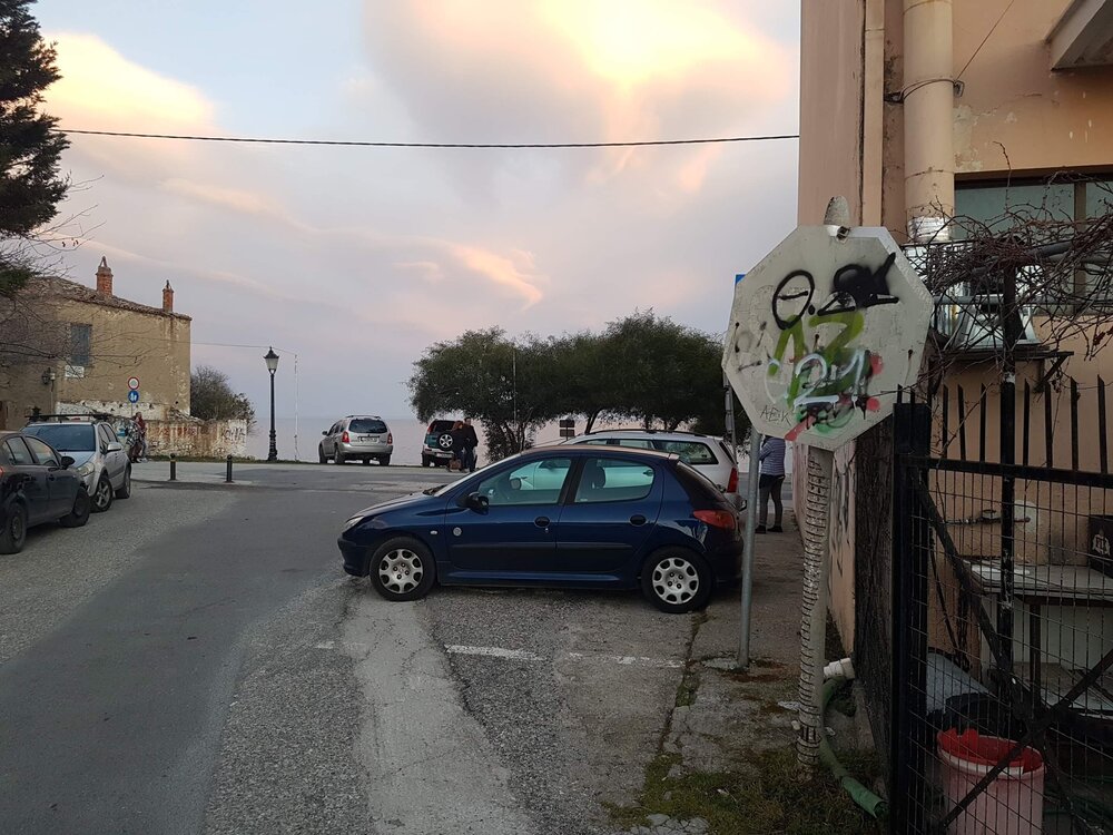 Όπως θα δείτε στις συνημμένες φωτογραφίες η σήμανση ΑΜΕΑ είναι κρυμμένη πίσω από αυτή του STOP. Στην πράξη όπως κινούμουν δεν είδα καν τη σήμαση ΑΜΕΑ. Ο δρόμος μπροστά ήταν αδιέξοδο, με αποτέλεσμα να παρκάρω με την όπισθεν και να καλύψω με το αυτοκίνητο τη σήμανση επί του οδοστρώματος (η οποία βέβαια ίσα-ίσα που φαινόταν) και να μην τη δω ούτε αυτή. Όταν είδα τον αστυνομικό να γράφει την κλήση, δεν ήξερα καν ποια είναι η παράβαση και μου έδειξε την κρυμένη πινακίδα πίσω από το STOP!