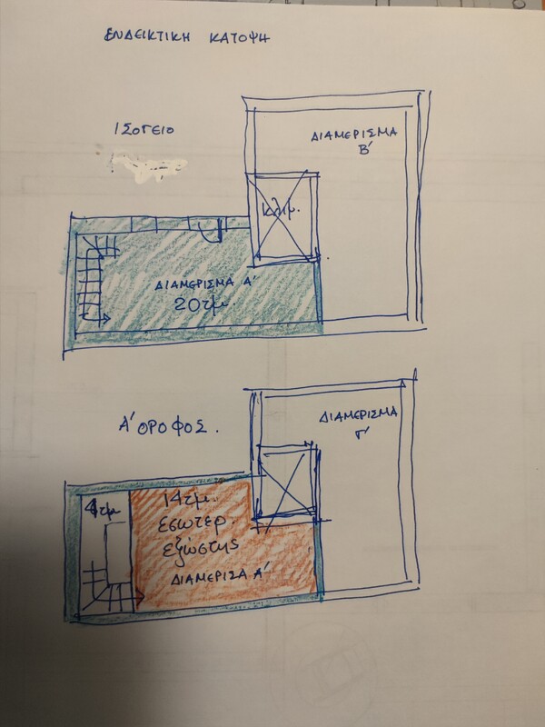 Συνάδελφοι καλησπέρα, έχω μια παράξενη περίπτωση για την οποία θα ήθελα την βοήθεια σας… το προς ένταξη "νόμιμο" πατάρι καταστήματος (βοηθητικός χώρος) ύψους 2.25μ. περιγράφεται κανονικά στις κατόψεις / τομές άδειας του '78 (προ ΓΟΚ '85 οπότε δε μέτρησε στη δόμηση) καθώς και στα συμβόλαια, δίχως όμως να έχει κατασκευαστεί εν τέλει λόγω απαίτησης αυξημένου ύψους (αρχική χρήση μηχανουργείου αυτοκινήτων η οποία προέκυψε μετά την αρχή των εργασιών σκυροδέτησης, παρούσα χρήση γραφείο). Κατόπιν και σχετικά πρόσφατα για να εξυπηρετηθεί χώρος διαμονής υπερήλικα συγγενούς του ιδιοκτήτη ο οποίος διαμένει στην ίδια πολυκατοικία κατασκευάστηκε αυτόνομο πατάρι με κάναβο από μεταλλικά στοιχεία που αγκυρώνουν στα υποστυλώματα και περιμετρικά στις δοκούς με πλήρωση από σανίδια με ξεχωριστή είσοδο από το κοινόχρηστο κλιμακοστάσιο. Η κάλυψη της κατασκευής αυτής είναι τελικά μικρότερη από αυτή που προβλέπονταν αρχικά (άδεια του 78), έχει κλειστεί περιμετρικά με γυψοσανίδες, αποκλείστηκε από τον χώρο του γραφείου / καταστήματος που λειτουργεί στο ισόγειο με συνέπεια να είναι πλέον τελείως αυτόνομος ώς χώρος και λειτουργία. Όλο το υπόλοιπο της κάλυψης του κενού της στάθμης του παταριού (+3.30μ.) είναι επιπεδωμένο με ψευδοροφή γυψοσανίδας ορυκτής ίνας. Στην παρούσα φάση ο ιδιοκτήτης θέλει να μεταβιβάσει το ακίνητο στην κόρη του, για την οποία διαδικασία του ζητήθηκε φυσικά η βεβαίωση του μηχανικού. Βέβαια στον ισόγειο χώρο αυτή τη στιγμή λειτουργεί γραφείο υπο καθεστός ενοικίασης, ο ιδιοκτήτης όμως δήλωσε πως επιθυμεί εν καιρώ να μετατρέψει όταν χρειαστεί το πατάρι σε αποθηκευτικό - βοηθητικό χώρο για το κατάστημα με εσωτερική μεταλλική σκάλα.. Να φανταστώ πως θα ακολουθηθεί η οδός του ΔΕΔΟΤΑ (λόγω μικρού εμβαδού δόμησης ~30μ²) κατηγορίας 1 για την συμπλήρωση των δικαιολογητικών και των συναφών εγγράφων; … Επειδή ο ιδιοκτήτης δεν θέλει να δημιουργήσει ανεξάρτητη ιδιοκτησία του παταριού από το κατάστημα καθότι στο μέλλον θέλει να το προσαρτήσει και πάλι σε αυτό, μήπως εν τέλει να ήταν σκόπιμο να ΜΗΝ δηλωθεί ως αλλαγή χρήσης, αλλά επί του παρόντος μόνο η παράβαση της εισόδου από τον Κ.Χ. του κλιμακοστασίου με αναλυτικό; Σε ενδεχόμενο έλεγχο στον οποίο θα διαπιστωθεί η αλλαγή χρήσης τι γίνεται όμως και έως ότου γίνει η επαναφορά της χρήσης στην προβλεπόμενη; Ευχαριστώ
