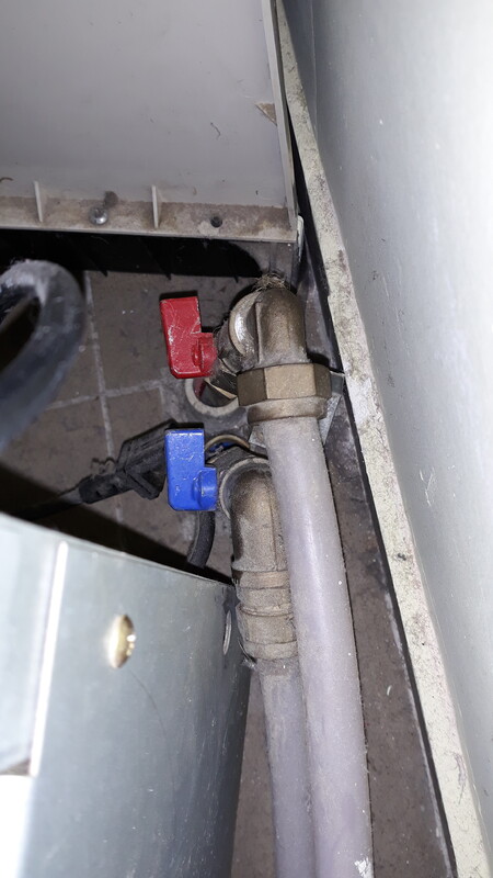 (Mεταφέρθηκε στην ενότητα ιδιωτών. Pavlos 33) Έχω ένα funcoil που βγάζει χλιαρό αέρα. Οι 2 βάνες μπλε και κόκκινη είναι για κάποιο λόγο κλειστές. Η ερώτησή μου είναι ποιά πρέπει να είναι κλειστή ή ανοιχτή. Με κλειστή την θέρμανση άνοιξα την μπλε και ετρεξαν νερά. Το funcoil δεν έχει βλάβη. Παραθέτω φωτό.