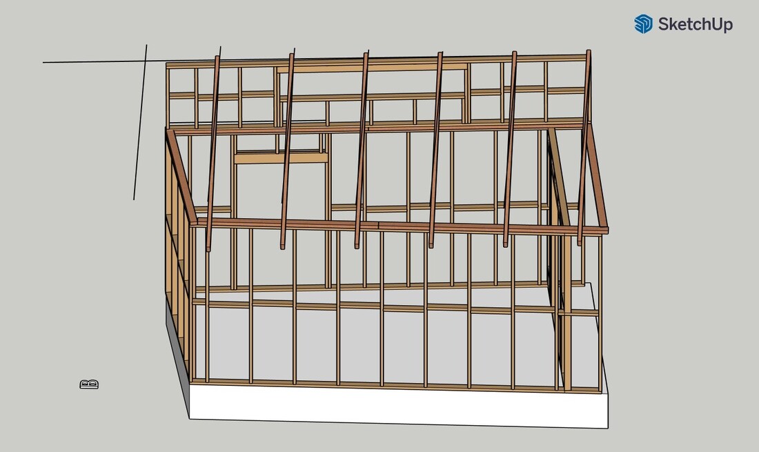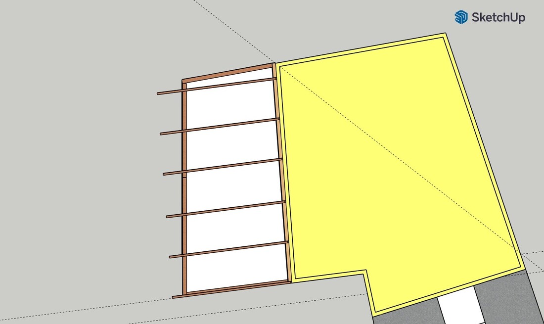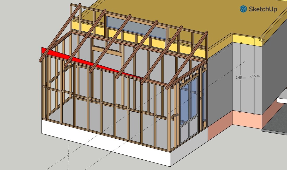 Γεια σε όλους, Θέλω να φτιάξω μια επέκταση στο ισόγειο με μονόριχτη στέγη και οι δύο πλευρές των τοίχων να μην είναι παράλληλες (η μία θα εφάπτεται στο υφιστάμενο και η απέναντι θα ακολουθεί το όριο του οικοπέδου. Η οροφή θα είναι από πάνελ πολυουρεθάνης με στήριξη κάθε 1 μέτρο σε δοκούς 10x15cm Έχω σχεδιάσει τα δοκάρια με δυο τρόπους, η πρώτη επιλογή όπως θα εξυπηρετούσε με βάση την κάλυψη των τοίχων που θα κατασκευαστούν μπροστά και πίσω, και η Β επιλογή που στηρίζουν τα πάνελ με γωνίες 90 μοιρών από τη σταθερή πλευρά του σπιτιού. Και στις δυο περιπτώσεις υπάρχει διαφορά στο κάτω άκρο της στέγης περίπου 30 cm λόγο έλλειψης παραλληλίας (λογικό) Θέλω να μάθω αν αυτός ο τρόπος σχεδίασης της στέγης είναι πρακτικά δυνατόν να κατασκευαστεί (λόγο των πάνελ θα χρειαστεί ακρίβεια στο αλφάδιασμα των δοκαριών που θα εδράζονται_ ή αν υπάρχει κάποια άλλη ιδέα για να δημιουργηθεί με ορθό τρόπο. Ο ξύλινος τοίχος θα πρέπει να ακολουθεί την στέγη (άρα να σηκώνεται περισσότερο προς το τέλος) και σε αυτήν την περίπτωση να σχεδιάσω έναν τριγωνικό τοίχο πάνω από τον κύριο, όπως φαίνεται και με το κόκκινο χρώμα. Πρόταση του στεγά είναι να γίνει αλφάδιασμα με βάση το υφιστάμενο κτίριο και να βγούν με λοξά κοψίματα τα panel στο τελείωμα τους, όμως με αυτό τον τρόπο προκύπτουν κενά μπρος και πίσω στην ξύλινη τοιχοποιία που θα δημιουργηθεί καθώς δεν θα είναι αλφαδιασμένοι οι τοίχοι με την στέγη και έχει θέματα ο τεχνίτης που θα κατασκευάσει τα πλαίσια. Ο μηχανικός είναι νέος πολιτικός μηχανικός χωρίς εμπειρία στις κατασκευές από ξύλο και έχει διάφορες ενστάσεις. Σας ευχαριστώ
