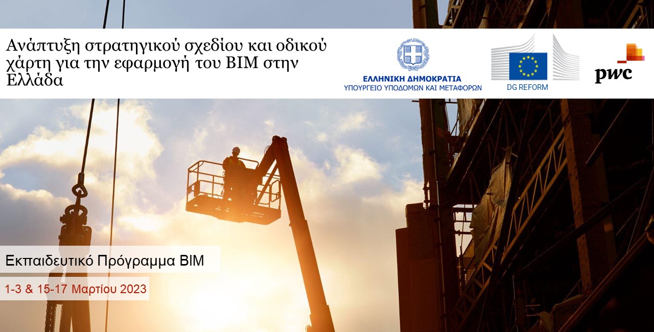 Το ΥΠΥΜΕ στο πλαίσιο του έργου «Ανάπτυξη στρατηγικού σχεδίου και οδικού χάρτη για την εφαρμογή του ΒΙΜ στην Ελλάδα», σε συνεργασία με τη DG REFORM και τον ανάδοχο του έργου PwC, διοργανώνει μια σειρά από εκπαιδευτικές ημερίδες σχετικά με τη χρήση του Building Information Modelling (BIM) στις κατασκευές. Οι εκπαιδεύσεις θα πραγματοποιηθούν διαδικτυακά 1-3 και 15-17 Μαρτίου, η συμμετοχή είναι δωρεάν και απευθύνεται σε όλα τα στελέχη του ευρύτερου μελετητικού και κατασκευαστικού κλάδου. Το εκπαιδευτικό πρόγραμμα BIM αποσκοπεί στην προώθηση χρήσης BIM μέσω της ενίσχυσης των γνώσεων και ικανοτήτων καθώς και την ενημέρωση του μελετητικού και κατασκευαστικού κλάδου σχετικά με τα ψηφιακά εργαλεία και τις δυνατότητες του. Συγκεκριμένα, το πρόγραμμα των εκπαιδεύσεων περιλαμβάνει τη θεωρητική και πρακτική κατάρτιση των συμμετεχόντων αναφορικά με τις εξής κύριες θεματικές ενότητες: Βασικές αρχές BIM (ISO 19650, οφέλη και δυνατότητες του BIM) Χρήση του BIM στη φάση της μελέτης του έργου Χρήση του BIM στη φάση της κατασκευής του έργου Χρήση του BIM στη φάση της διαχείρισης του έργου Παρουσίαση των τυπικών υποδειγμάτων συγγραφής υποχρεώσεων BIM (OIR, PIR, EIR, AIR) Οι εκπαιδεύσεις θα πραγματοποιηθούν διαδικτυακά και η δήλωση συμμετοχής στο εκπαιδευτικό πρόγραμμα πραγματοποιείται με τη συμπλήρωση της φόρμας συμμετοχής μέσω του παρακάτω συνδέσμου. https://forms.gle/KmJmg9aMcs7Yj7AJ6